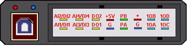 | Analog inputs (AI1–AI4) | AI1, AI2 … 0–5V; AI3, AI4 … 0–5V/0–10kΩ |