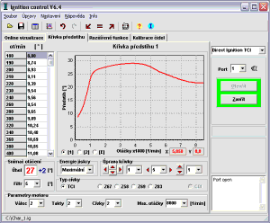 Základní vlastností zapalování je řízení předstihu v závislosti na aktuálních otáčkách motoru. K nastavení charakteristiky řízení předstihu slouží záložka Křivka předstihu.