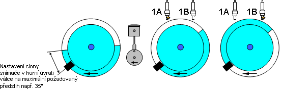 Řízení předstihu realizuje mikroprocesor zapalování, který časuje zpoždění zážehu dle zadané křivky předstihu a aktuálních otáček.