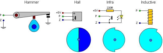| P | Snímač otáčení | -60 až 60V, vzestupná hrana 0 -> 1,2V |