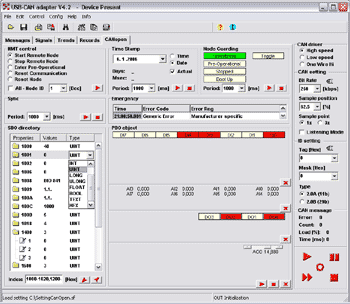 Poskytuje nástroje pro řízení jednoho Slave zařízení komunikujícího dle standardu CANopen CiA DS-301. Umožňuje vysílání, příjem a zpracování objektů (zpráv) NMT, Node Guarding, Sync, Time Stamp, Emergency, PDO a SDO. Časování periodických zpráv je volitelné od 10ms do 10s. Konfiguraci signálů zobrazených v panelu PDO object je nutné předem provést prostřednictvím okna Signals database configuration nebo přímo při volbě signálu ke zobrazení.