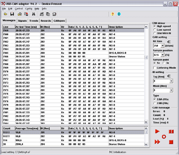 Umožňuje okamžité zobrazení CAN zpráv s možností vkládání popisu o významu zpráv. Ke zobrazení přijatých zpráv slouží okamžitý a diagnostický seznam zpráv. Okamžité zobrazení vypisuje data v sousledných řádcích s výpisem času příjmu zprávy, identifikátorem, daty a popisem zprávy. Diagnostické zobrazení zobrazuje zprávy s odlišným Identifikátorem ID s okamžitým zobrazením počtu zpráv a průměrného času příjmu.